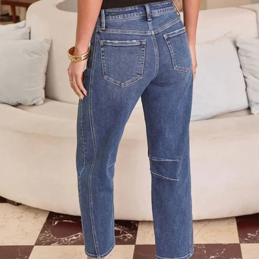 Straight Pants Jeans Women Streetwear Denims High Waist Washed Distressed Pockets Female 2025 Vintage Ankle Length Trousers
