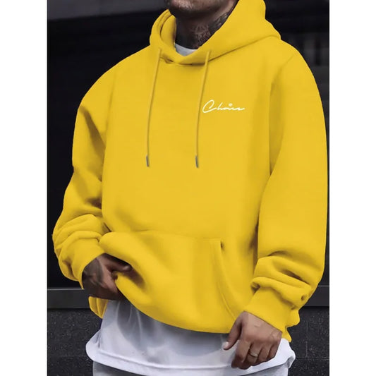 2025 New Simple Printed Men's Casual Hoodie Comfortable Hoodie with Kangaroo Pocket Loose Casual Four Seasons Street Hoodie