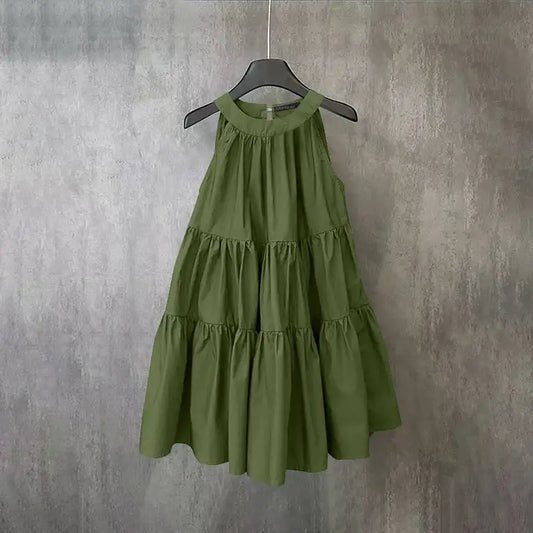 ZANZEA Summer Halter Sleeveless Tiered Dress Women Korean Ruffle Patchwork Robe 2024 Beach O-neck Loose Sundress Sweety Vestidos
