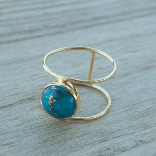 New Bohemian Large Round Turquoise Stone Rings for Women Vintage Double Layer Ring Retro Party Jewelry Boho Band Ring