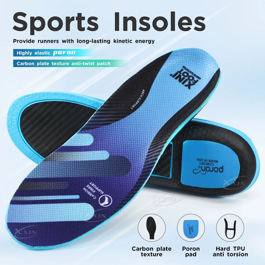 【Xxin】Carbon Fiber Insole Poron Cushioning heel Arch Support Shoe Insoles Pad Running Sport Shoe Insert size 35-48