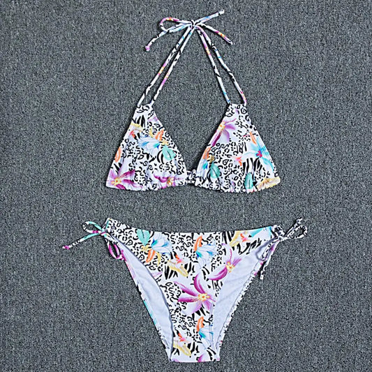 1 Set Women Swimsuit Padded Three-point Stretchy Beautiful Floral Print Bikini Set for Swimming Pool
