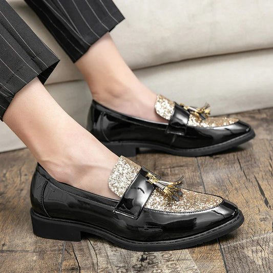 British Style Sequined Leather Shoes Men Golden Men's Loafers Big Size 38-47 Luxury Comfortable Business Shoes Men Formal Shoes