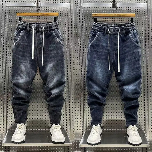 High Quality New 2024 Luxury Designer Casual Loose Drawstring Denim Jeans Men Full Length Wide Leg Streetwear Cowboy Harem Pants