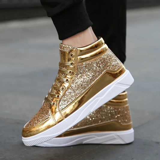 2022 Fashion Men High Top Sneakers Male Ankle Boots Gold Luxury Glitter Shoes Streetwear Hip Hop Casual Boots Chaussures Spring
