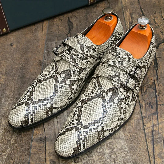 2025 Britain Gentleman Pointed Snakeskin Pattern Casual Shoes For Men Monk Strap Loafers Formal Wedding Dress Footwear