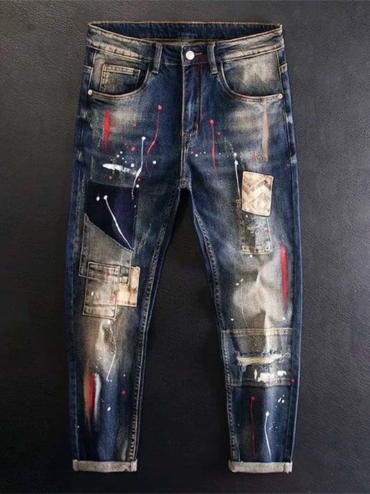 2024 Spring and Autumn New Fashion Trend Printed Straight Leg Stretch Jeans Men's Casual Loose Comfortable High Quality Pants
