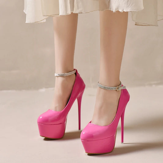 2024 Women Party Disco Dance 5.5cm Platform Pumps Buckles Super High Thin Spike Heels Fashion Dress Party Red Big Size 49 50