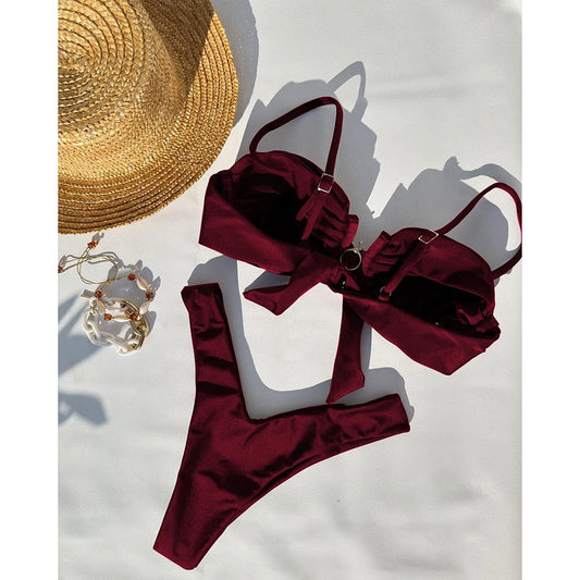Miyouj 2025 Bikini Set Shiny Swimwear Solid Color Swimsuits Women's Beach Wear Suits Brazilian Biquini Triangle Two Piece Suit