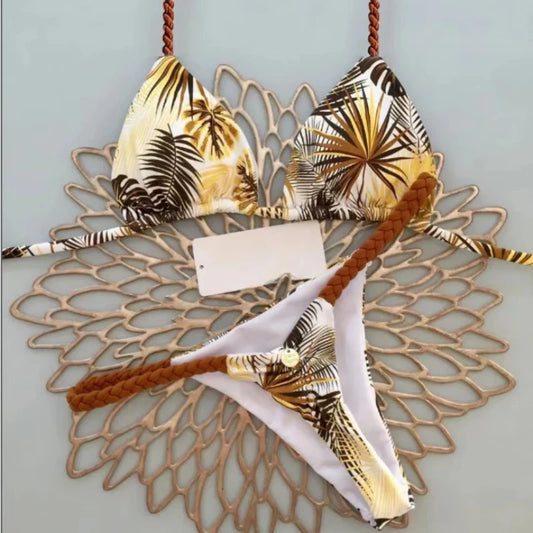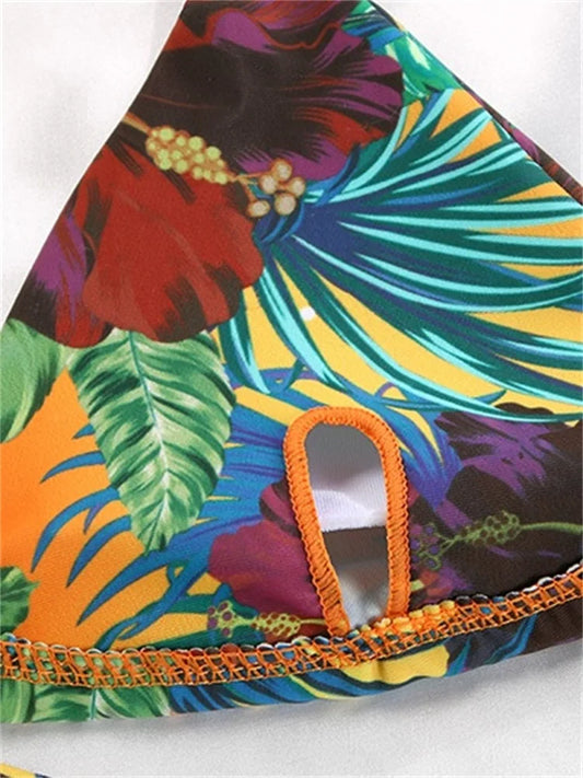 Triangle Bikinis Set Bandage Swimwear Women's Two-Piece Swimsuit Sexy Bathing Suit Floral Printed Biquini Micro Thongs Beachwear
