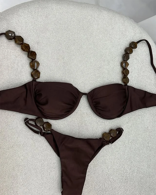 "2025 Sexy Bandeau Push-Up Bikini Set - Brazilian Thong Swimwear for Women"