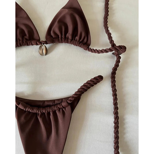 Sexy Swimsuit Women Triangle Bikinis Set Thong Bandage Swimsuits Solid Color bathing suit Two Piece String Swimear Beach Wear