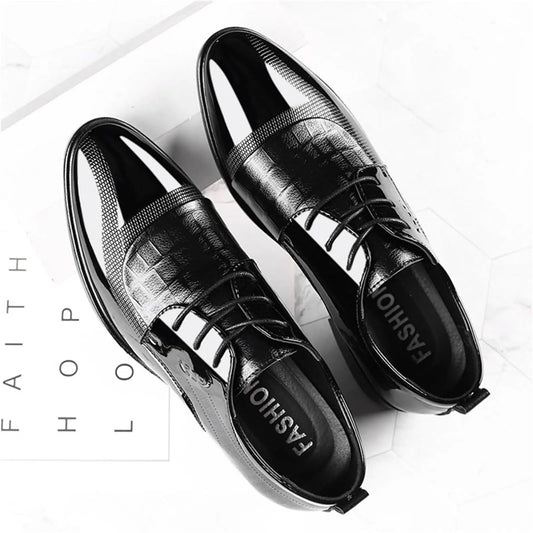 Mens Dress Shoes Formal Business Oxford Block Patent Leather Lace-up Comfortable Pointed Shoes For Men