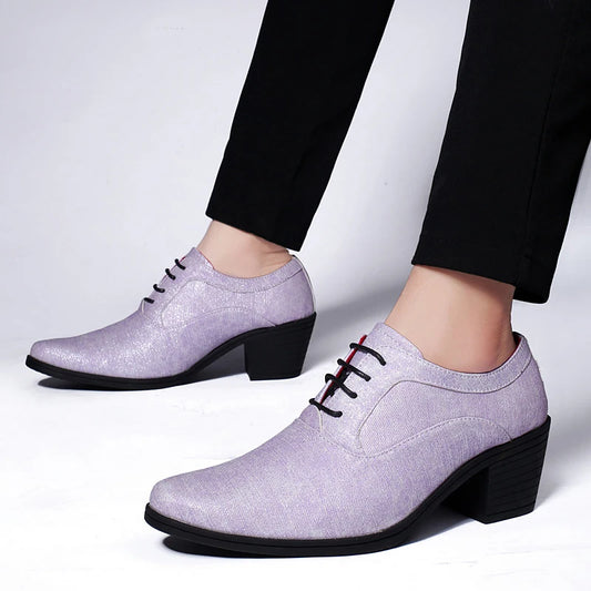 Elegant Purple High Heel Mens Shoes 2025 Size 38-46 Pointed Toe Italian Wedding Shoes for Man Luxury Business Men's Dress Shoes