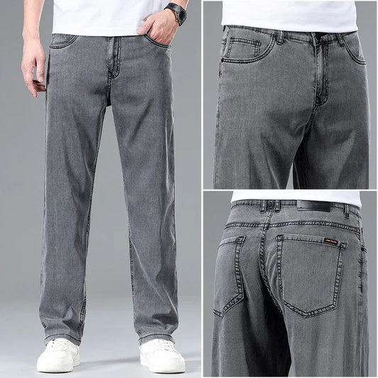 2024 New In Lyocell Summer Thin Jeans Men's Loose Straight Casual Stretch Business Large Size Male Pants Solid Color