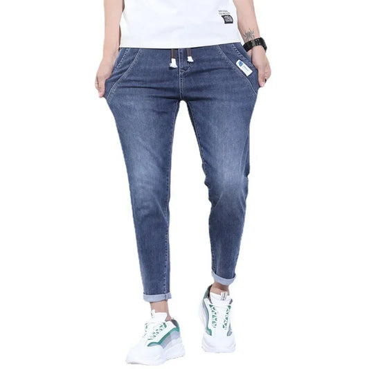 2023 New Summer Thin Style Korean Street LUXURY Work Pants Men's Elastic Waist Jogger Jeans for Work Wear Clothing Denim Jeans