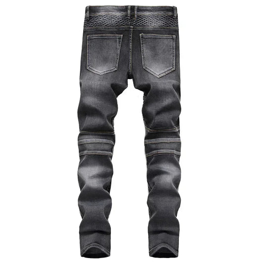 Men's New Casual Motorcycle Jeans Hip Hop Street Riding Stretch Slim Fit Straight Pants Patchwork Fashion Denim Trousers Male