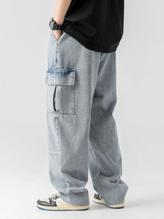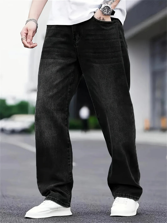 Men's Straight-Leg Jeans, Minimalist for All Seasons, Loose with Drape, Narrow-Wide Leg, Retro Casual Long Pants, Sizes 28-38