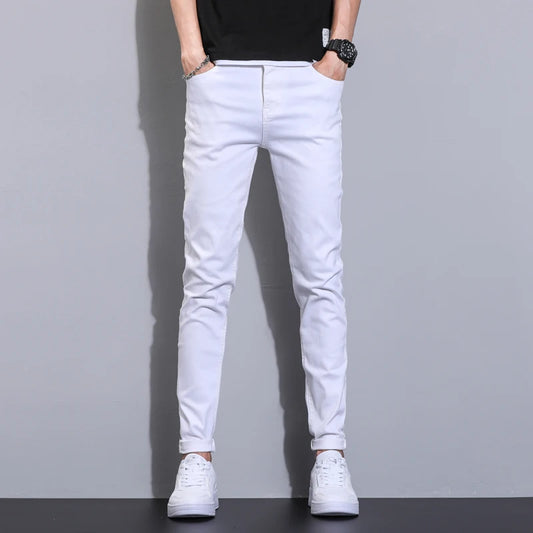 Summer men's pure white jeans high-end comfortable slim fit denim pants versatile micro elastic straight leg casual pants
