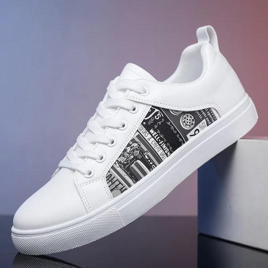 Mens Shoes 2025 Platform Sneakers New Trend Design Graffiti Skateboard Shoes Lace UP Soft Sole Non Slip Outdoor Sports Shoes
