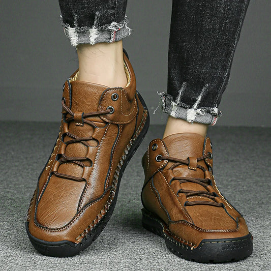 High Quality Men Outdoor Walking Hiking Loafers Casual Leisure Soft Bottom Shoes Fashion Flats Comfy Lace-Up Minimalist Shoes