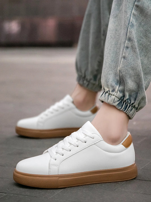 Men's Normcore Style Front Strap Sports Outdoor Skateboard Shoes, Fashionable Contrasting White Sneakers, White Shoes, Versatile Outdoor Shoes for Students