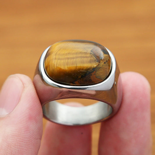 Classic Natural Tiger Eye Brown Stones Rings For Men Women Simple Stainless Steel Stone Ring Punk Fashion Jewelry Gift Wholesale