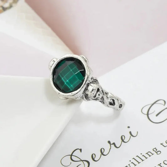 Solid Green Black Stone Ring Stainless Steel Retro Punk Biker Unisex Ring