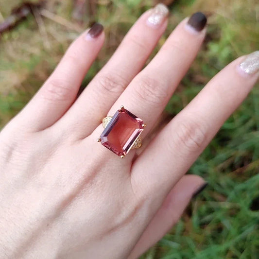 Square Zultanite Rings Paved CZ Zircon Color Change Gemstone Gold Plated Open Sultanite Diaspore Crystal Jewelry for Women