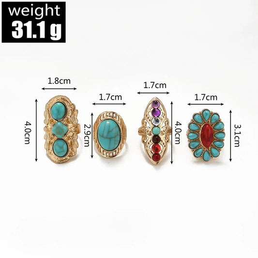 Vintage Antique Silver/Gold Color Rings Sets Colorful Opal Crystal Stone Carve for Women Men Bohemian Jewelry Anillos