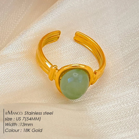 eManco Vintage Rings For Women Gold Color Stainless Steel Adjustable Natural Stone Ring Jewelry 48-hour shipping