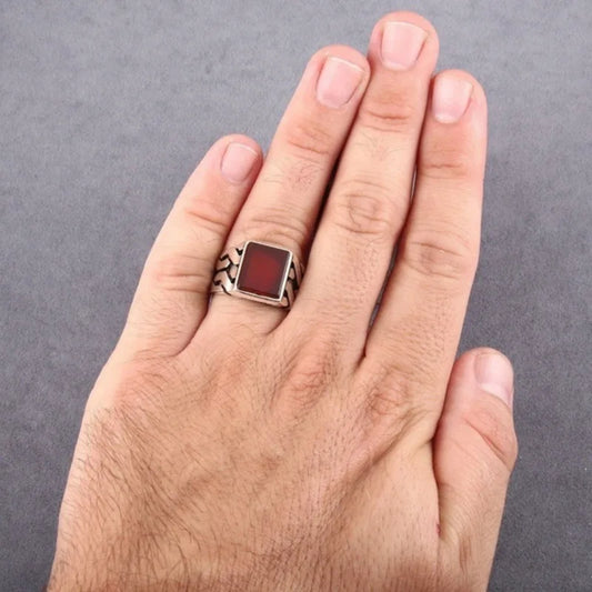 New red glass stone ring fashionable retro men's and women's fashion accessories