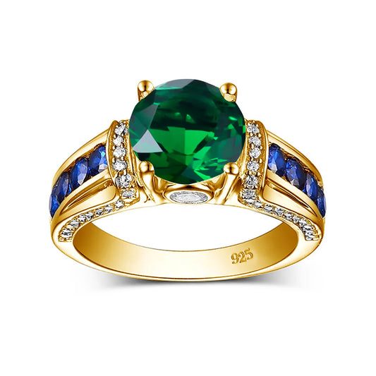 Szjinao Green Emerald Ring Gold For Woman Round Cut 8*8mm 2ct Stone Wedding Luxury Designer Jewelry High Quality Valentines Gift