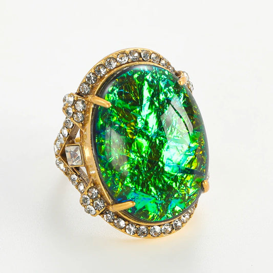 Vintage Green Ring Adjustable Luxury Dubai Jewelry Designer Women Statement Natural Stone Rhinestone Antique Gold Color 2025 New