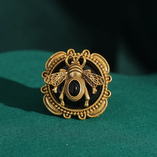 Romantic Gold Color Black Natural Stone Honey Wax Bee Rings for Woman Vintage Jewelry Accessories Luxury Girl Item Wedding 2025