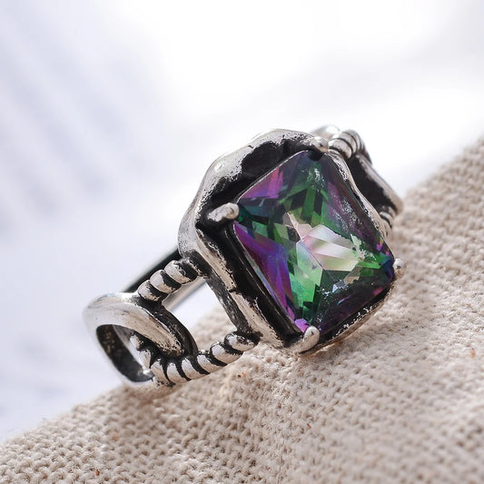 Vintage Ethnic Style Geometric Square Inlaid Zirconia Ring Ladies Niche Holiday Party Accessories Jewelry Gifts