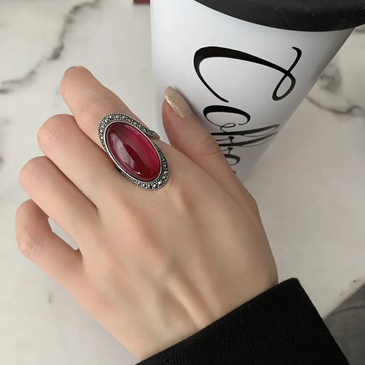 Personality Exaggeration Vintage Red Garnet Stone Thai Silver Ladies Engagement Rings Jewelry For Women Birthday Gifts No Fade