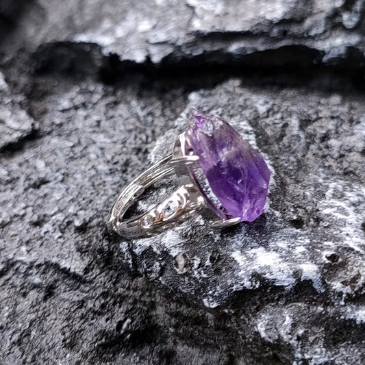 Raw Irregular Amethysts Ring For Women Reiki Healing Crystal Natural Tourmaline Stone Rings Adjustable Jewellry Medition Gifts