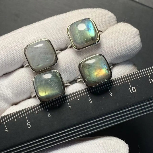 Square Natural Moonstone Ring Adjustable Female Ring Jewelry for Women Gift Wholesale High Quality Vintage Fine