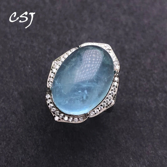 CSJ Big Stone Natural Aquamarine Rings Sterling 925 Silver Turquoise Gemstone 13*18mm Jewelry Women Wedding Engagment Party Gift