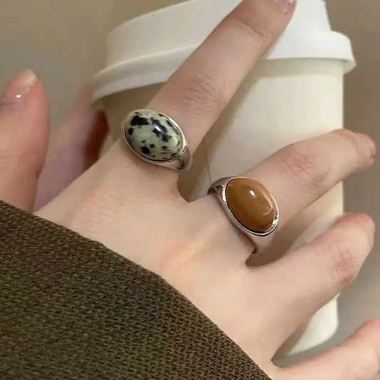 1Pc Vintage Ring for Ladies Simple Brown Stone Ring Light and Luxurious Irregular Circular Opening Ring Exquisite Jewelry Gifts