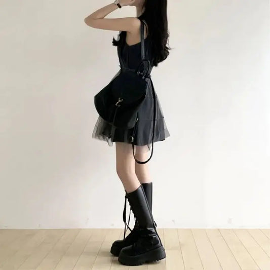 REALEFT Summer Y2k Black Mesh Women's Ball Gown Dresses 2025 New Sleeveless Strapless V-neck Party Sexy Mini Dress for Womens