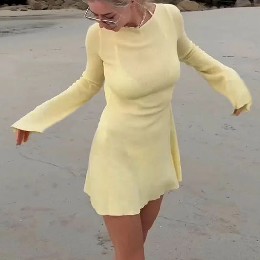 Beach Style Backless Sexy Dress Women Elegant Long Sleeve Slim Fit Short Dress Boho Holiday Summer Streetwear Y2K Outfits