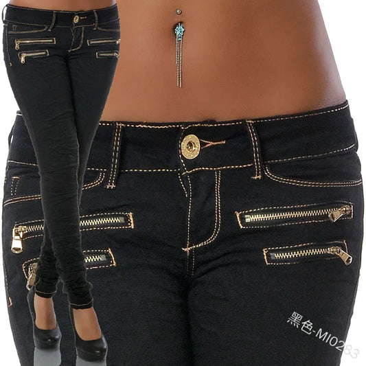 New Fashion Mid Rise Jeans Zipper Women Slim Fit Pleated Small Foot Pencil Pants for Women
