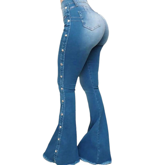 Jeans High Waist Strecth Denim Flare Pants Women Vintage Trousers Buttons Denims Streetwear 2024 Autumn Female Floor Length