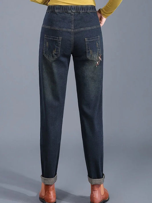 Artistic Retro Embroidered Jeans Women's Wear 2025 Spring Autumn New Loose High Waist Elastic Denim pants Female Casual Trousers