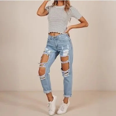 Sexy Skinny Jeans Women's Denim Pants Tight Fitting Hole Punching Fashionable Thin Leggings Casual Female Clothing