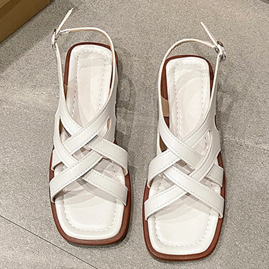 Women Sandals Ladies Flat Heels Clip-toe Casual Rome Sandals 2024 Summer Cross Narrowband Ankle Buckle Strap Female Beach Shoes
