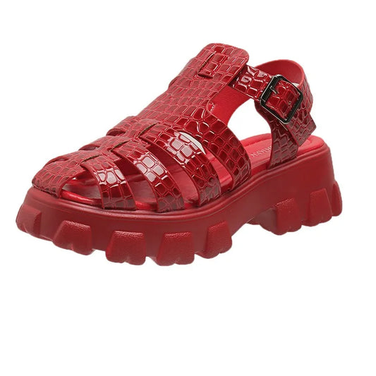 2024 Summer New Baotou Muffin Bottom Sandals Female Selling Large Size Bright Surface Platform Sandals Female