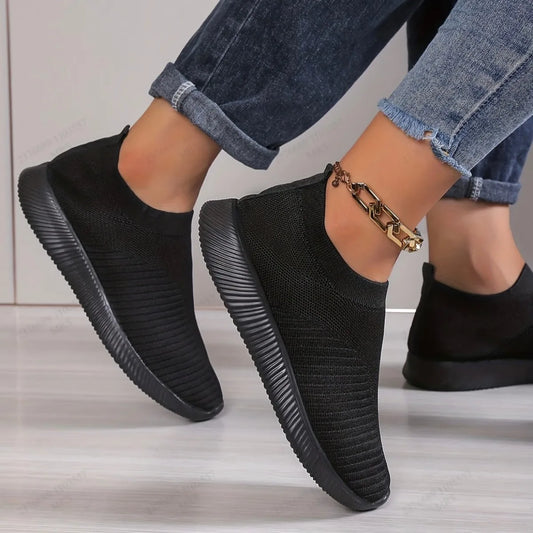Women's Solid Color Sneakers Breathable Mesh Woven Outdoor Lightweight Low Top Walking Running Sports Socks Shoes